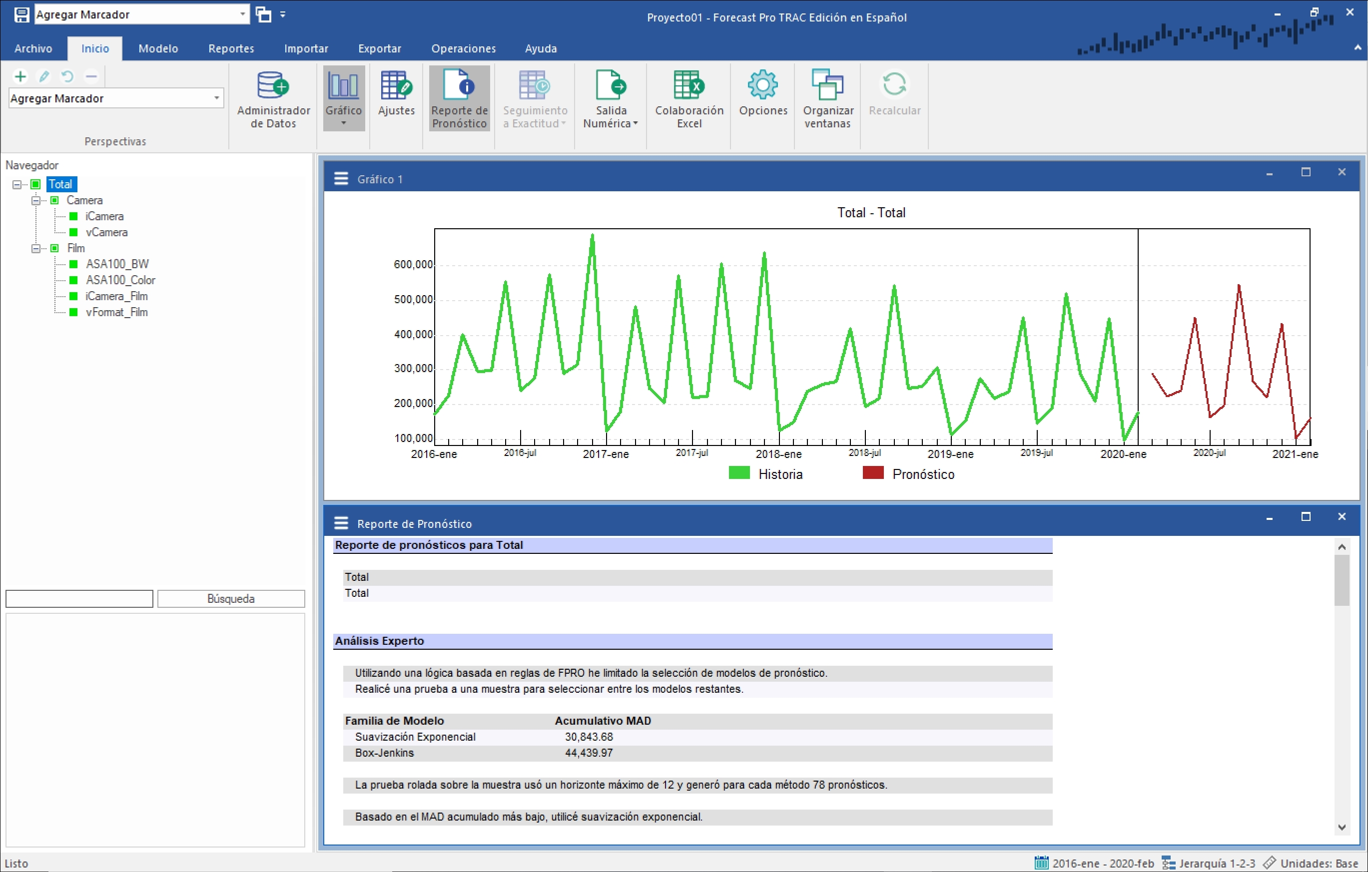 Cierra la Ventana de Consenso, abre el Reporte de Pronóstico y expande el Navegador en su totalidad. Tu pantalla se debería de ver como la que se muestra a continuación.