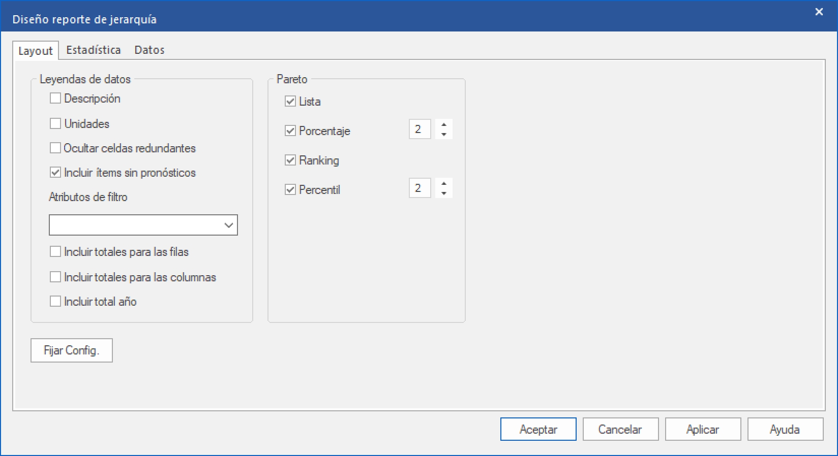 Selecciona los recuadros para los cuatro campos de Pareto (Lista, Porcentaje, Ranking y Percentil) y haz clic en OK.