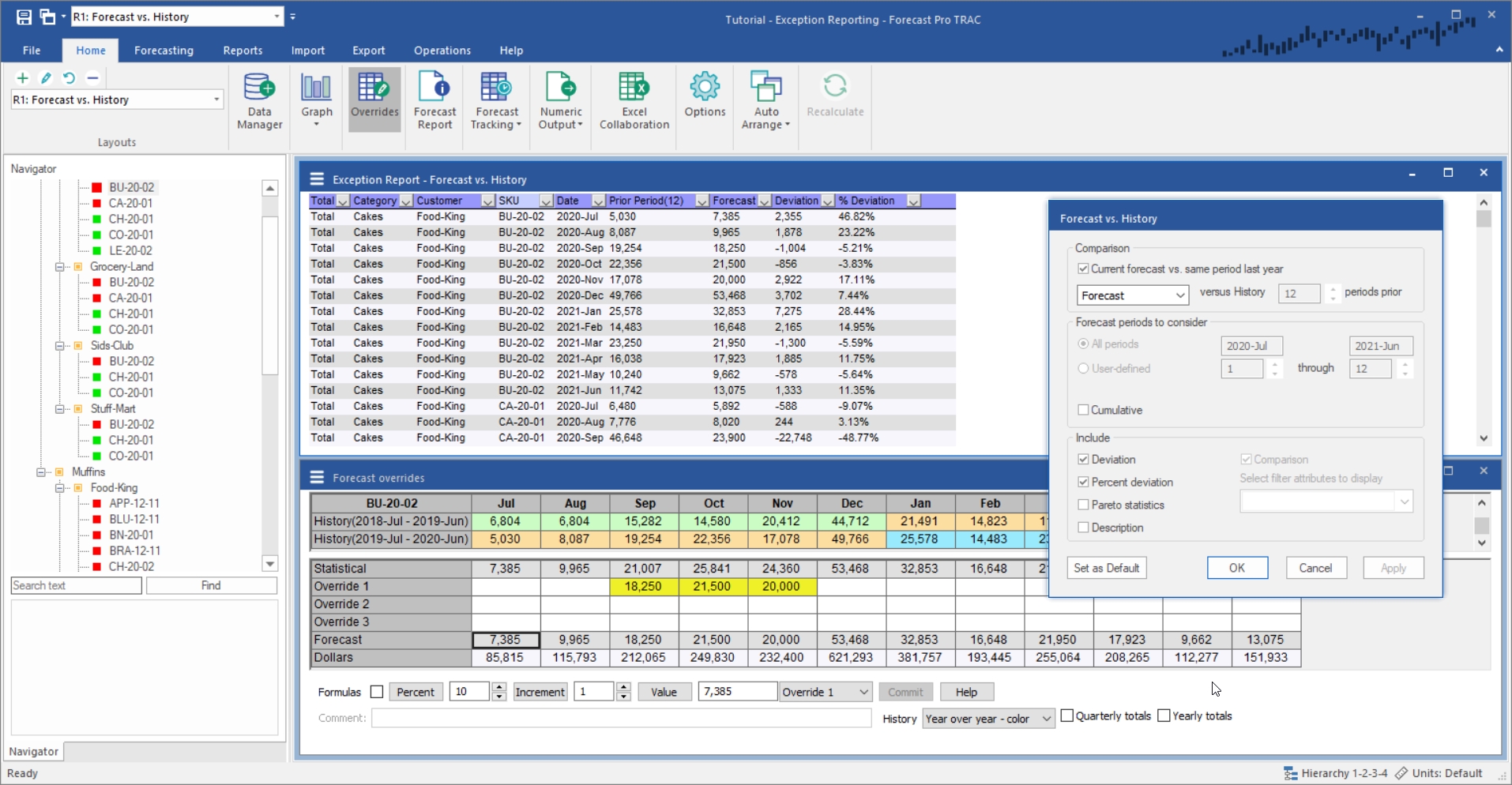 Forecast Pro includes six different exception reports. Let’s take a quick look at each of these using a set of layouts in our project.